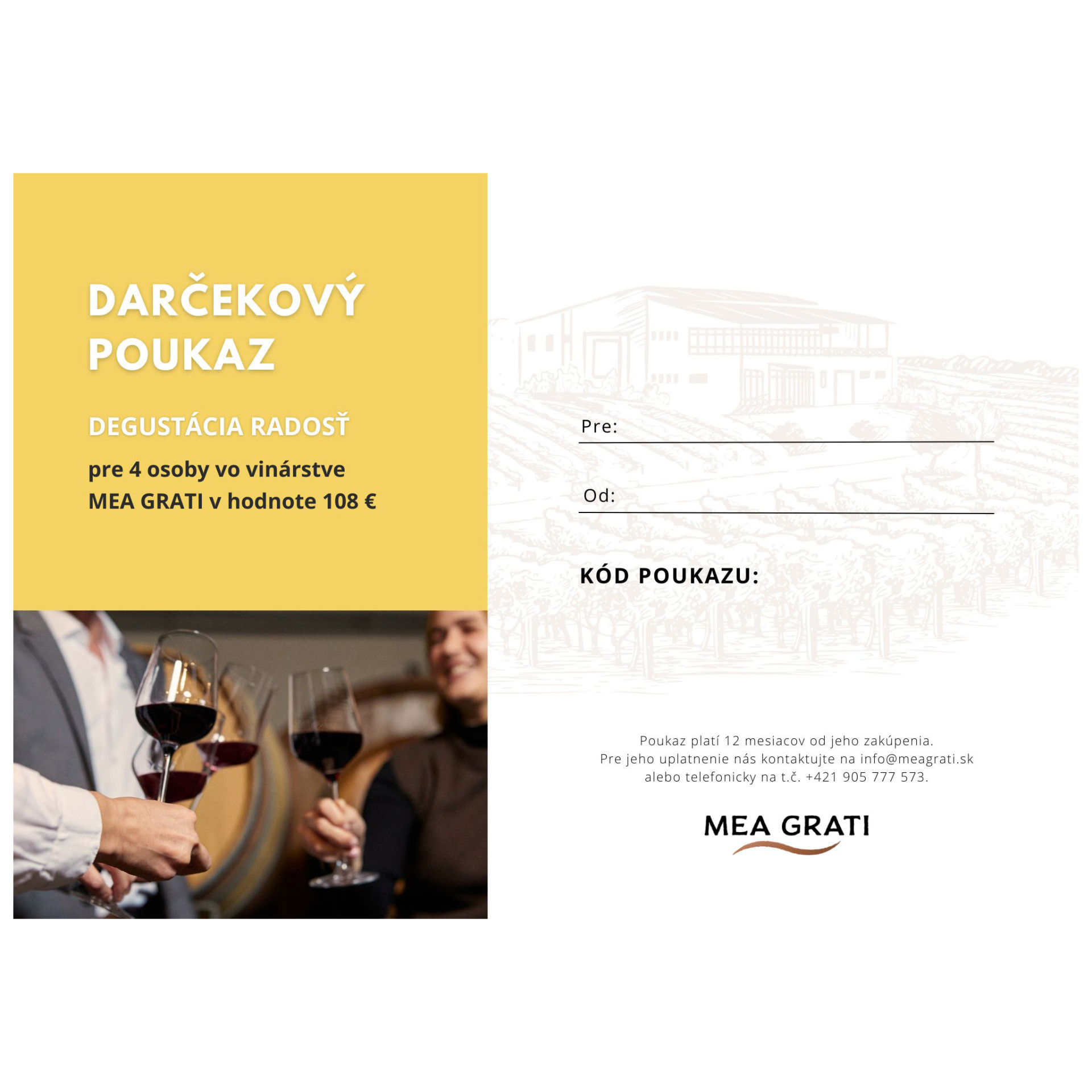 Zdieľaná radosť chutí najlepšie. Ideálny darček pre rodinu alebo priateľov, ktorí chcú spoločne objavovať svet vín MEA GRATI v príjemnej atmosfére vinárstva.