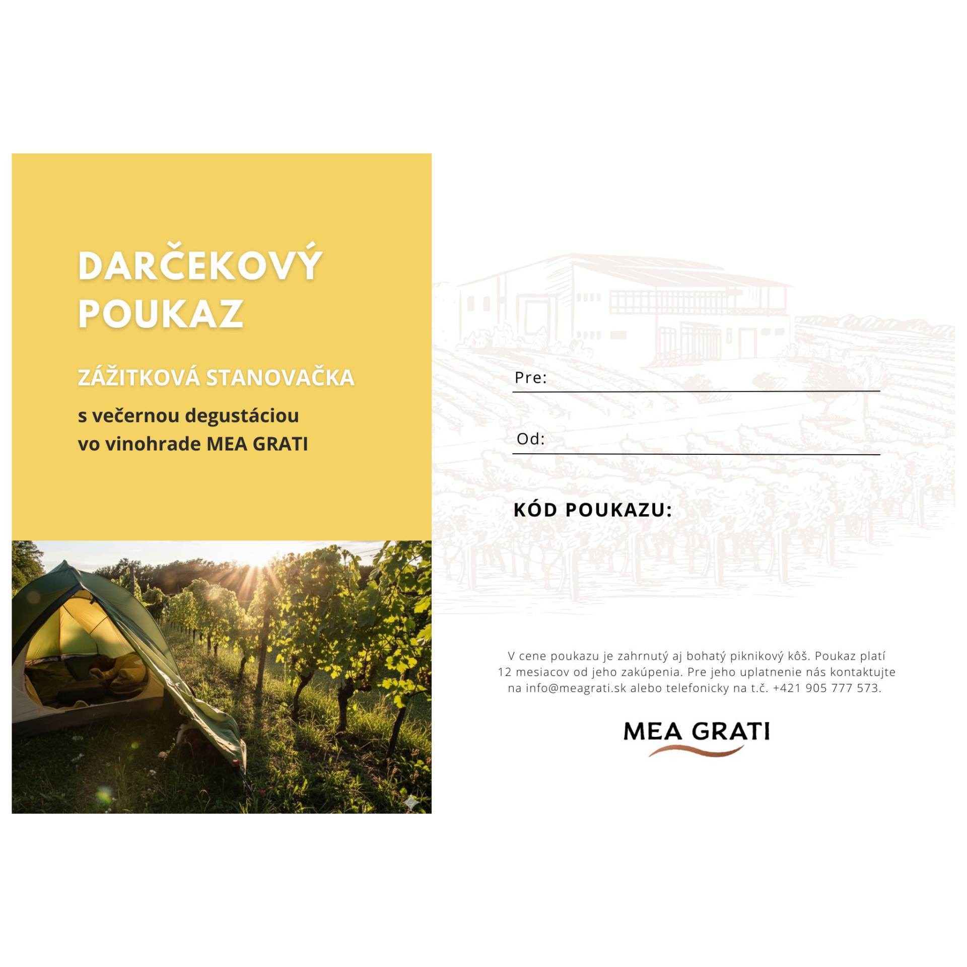 Prežite noc pod hviezdami priamo vo vinohrade. Tento jedinečný zážitok spája prírodu, pokoj a degustáciu vín MEA GRATI. Súčasťou je bohatý piknikový kôš, ktorý spríjemní večer aj ráno vo viniciach.
