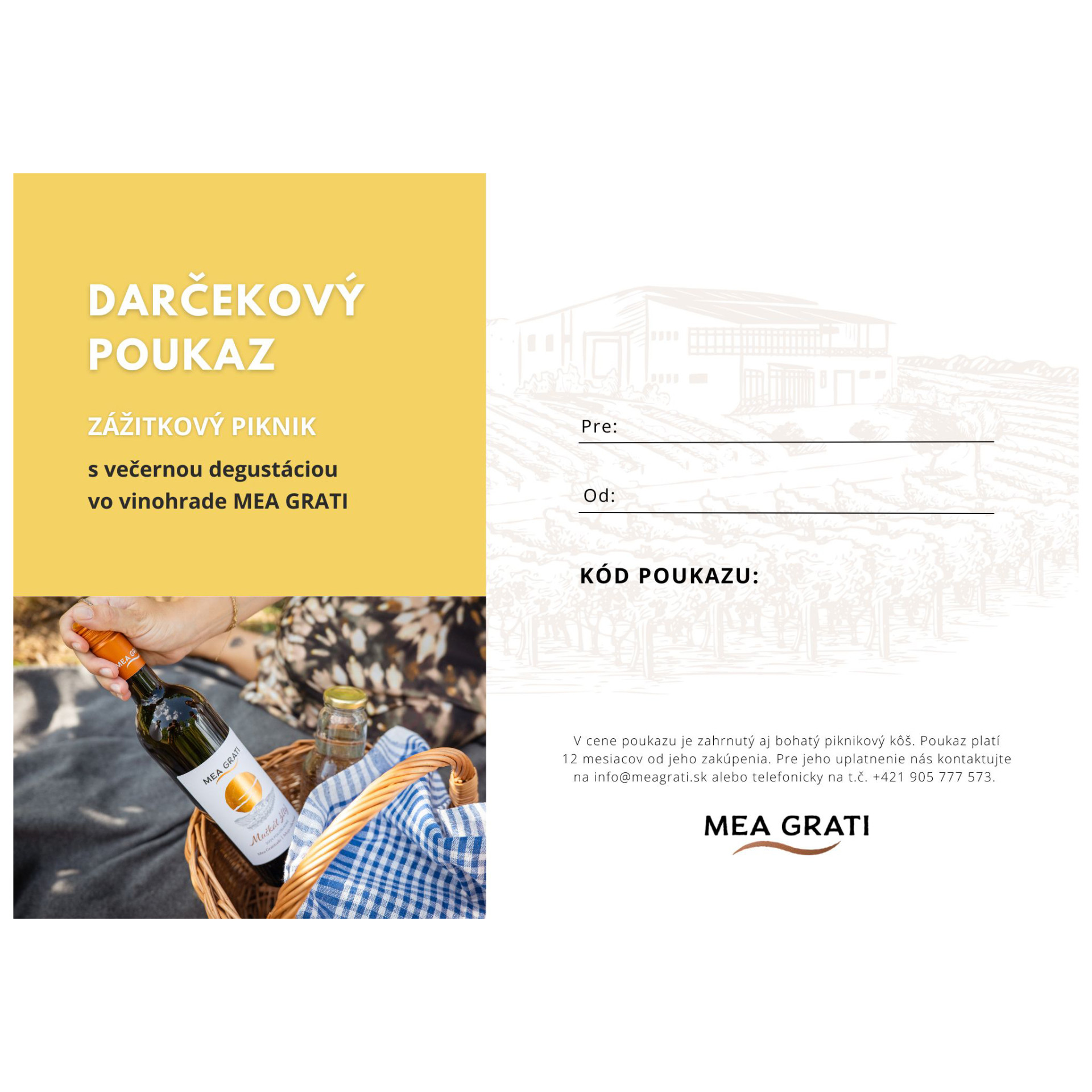 Oddýchnite si priamo medzi vinicami a vychutnajte si jedinečný piknik spojený s degustáciou výnimočných vín MEA GRATI. V cene je zahrnutý bohatý piknikový kôš plný lokálnych dobrôt, ktorý dotvára autentický zážitok v prírode.